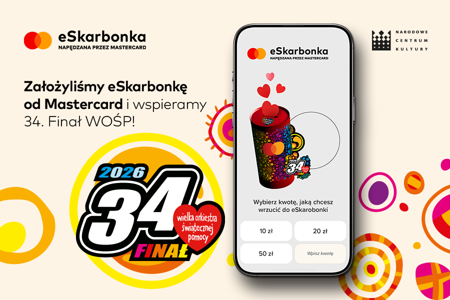 Narodowe Centrum Kultury gra razem z Wielką Orkiestrą Światecznej Pomocy. Zapraszamy do wsparcie naszej eSkarbonki i wspólnego działania na rzecz zdrowia najmłodszych pacjentów. 34. Finał WOŚP odbędzie się 25 stycznia 2026 roku pod hasłem „zdrowe brzuszki naszych dzieci”! Głównym celem tegorocznego finału jest diagnostyka i leczenie chorób przewodu pokarmowego u dzieci.