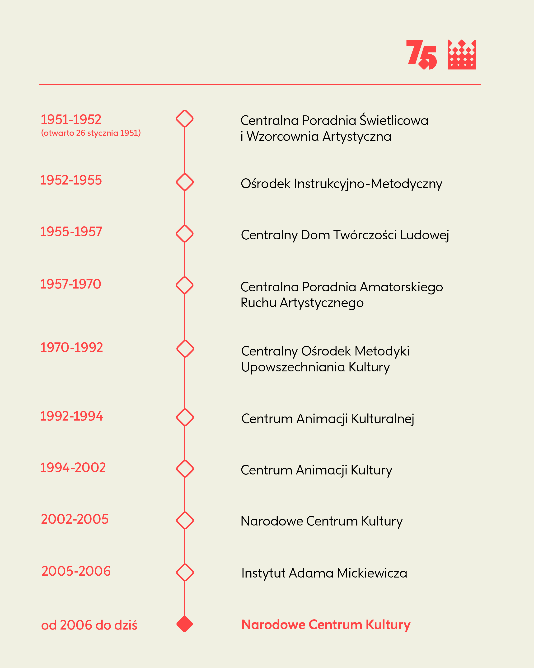 Siedemdziesiąt pięć lat i wciąż w gotowości. Bo kultura nigdy się nie zatrzymuje. Zawsze się zmienia i stawia nowe pytania. A Narodowe Centrum Kultury, pod tą czy inną nazwą, zawsze będzie próbowało na nie odpowiadać.