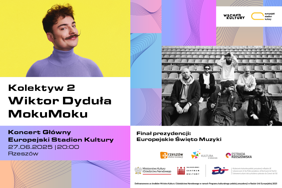 Festiwal Wschód Kultury – Europejski Stadion Kultury, organizowany przez Narodowe Centrum Kultury, Ministerstwo Kultury i Dziedzictwa Narodowego, Estradę Rzeszowską oraz Miasto Rzeszów, to wydarzenie, które co roku staje się symbolicznym mostem pomiędzy krajami Unii Europejskiej a państwami Partnerstwa Wschodniego. To przestrzeń międzykulturowego dialogu i twórczej wymiany – miejsce, gdzie tradycja spotyka się z nowoczesnością, a artyści z różnych części Europy współtworzą nową muzyczną opowieść. Jego interdyscyplinarna formuła łączy muzykę, teatr, sztuki wizualne, taniec, fotografię, kino oraz debatę publiczną, budując unikalną platformę międzykulturowej wymiany. W ramach festiwalu odbędzie się Koncert Główny – złożony z Koncertu Otwarcia i Koncertu Kolektywów – oraz dziesiątki wydarzeń rozgrywających się w przestrzeni miejskiej. Ulice Rzeszowa zamienią się w pulsujące centrum kultury: od instalacji site-specific, przez wystawy, warsztaty, alternatywną scenę muzyczną i liczne działania performatywne.