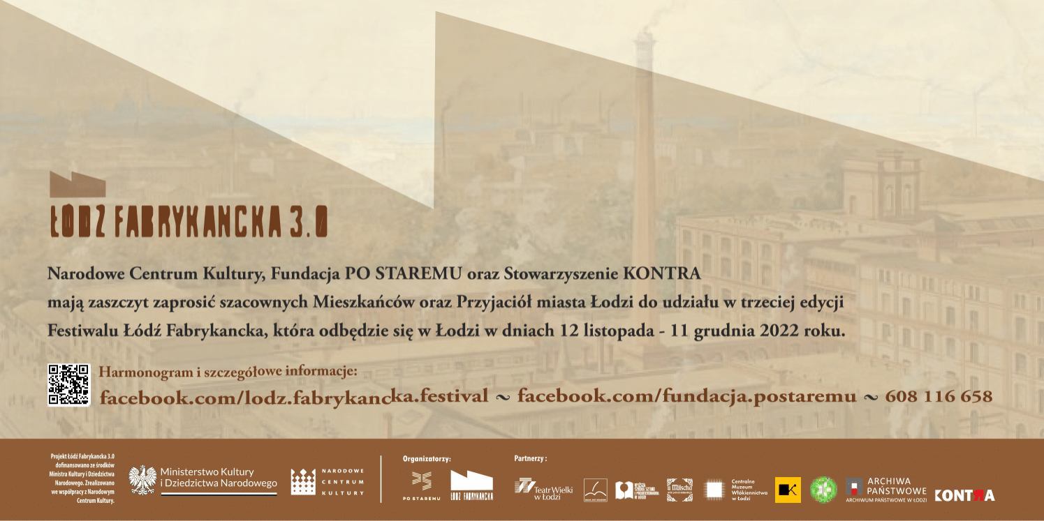 Festiwal Łódź Fabrykancka 3.0. dofinansowano ze środków Ministra Kultury i Dziedzictwa Narodowego.