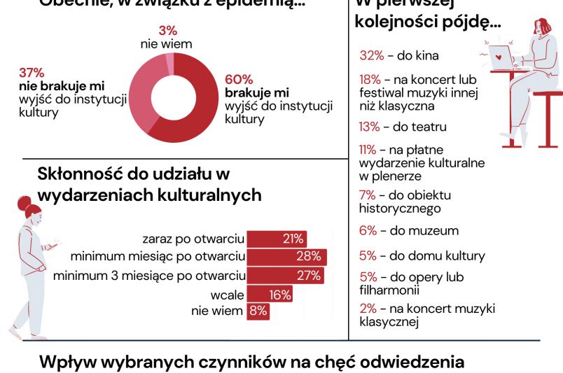 W grudniu 2020 r. Narodowe Centrum Kultury przeprowadziło drugą edycję sondażu, którego celem było zbadanie postaw i oczekiwań odbiorców kultury w związku z ograniczeniami w działalności instytucji kultury. Poprzednie badanie zrealizowane zostało w czerwcu 2020 r., w momencie, kiedy obostrzenia sanitarne zostały w znacznej mierze złagodzone i można było korzystać z oferty kin, teatrów, muzeów, galerii, domów kultury i bibliotek. W listopadzie 2020 w związku z drugą falą pandemii, rząd podjął działania mające na celu ograniczenie rozprzestrzeniania się wirusa COVID-19, w efekcie których czasowo zamknięto instytucje kultury dla publiczności.