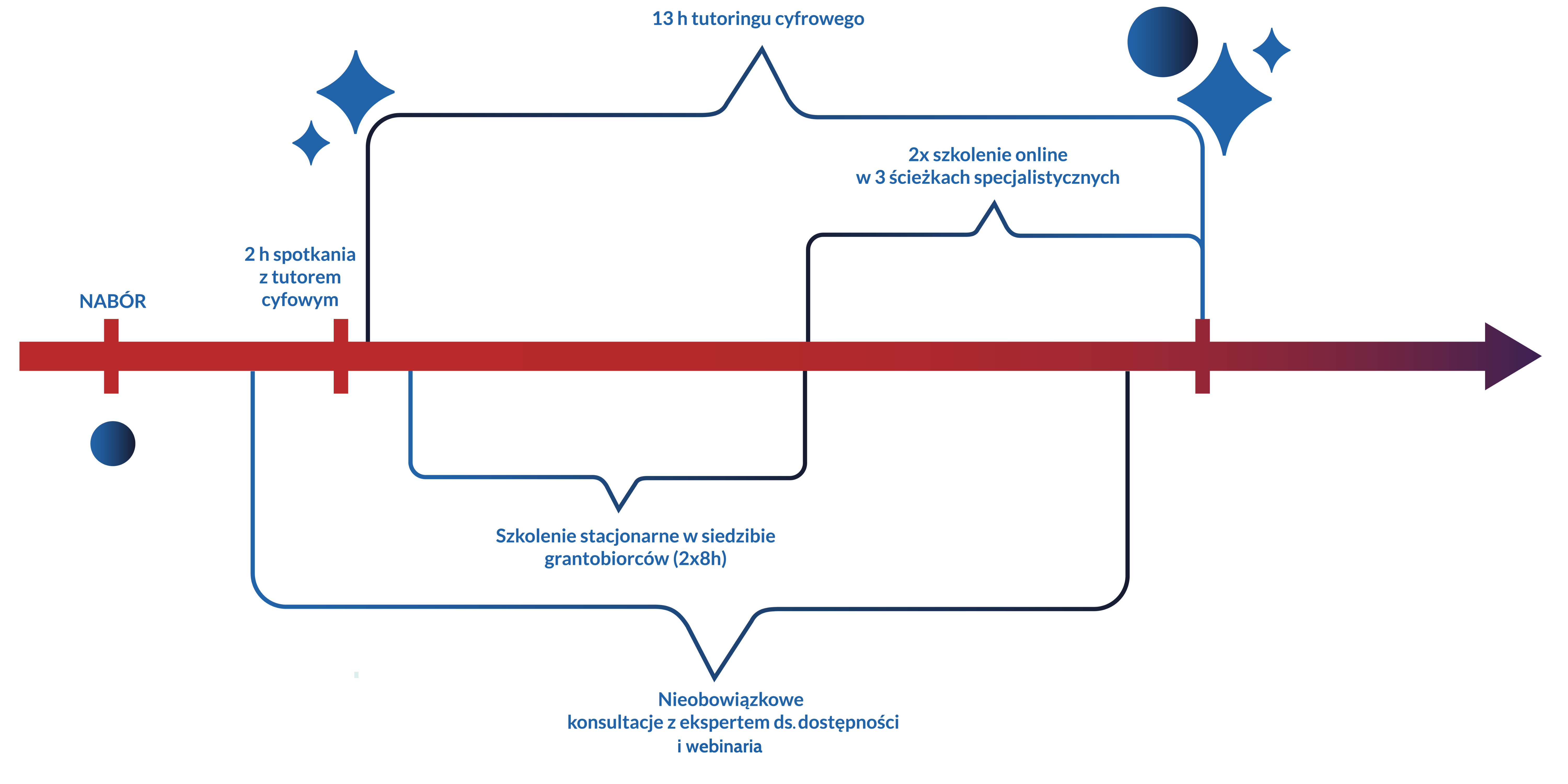 Grantobiorca będzie mógł wybrać dalszy rozwój – w zależności od zdiagnozowanych potrzeb – w postaci skorzystania z trzech alternatywnych ścieżek szkoleniowych realizowanych online: