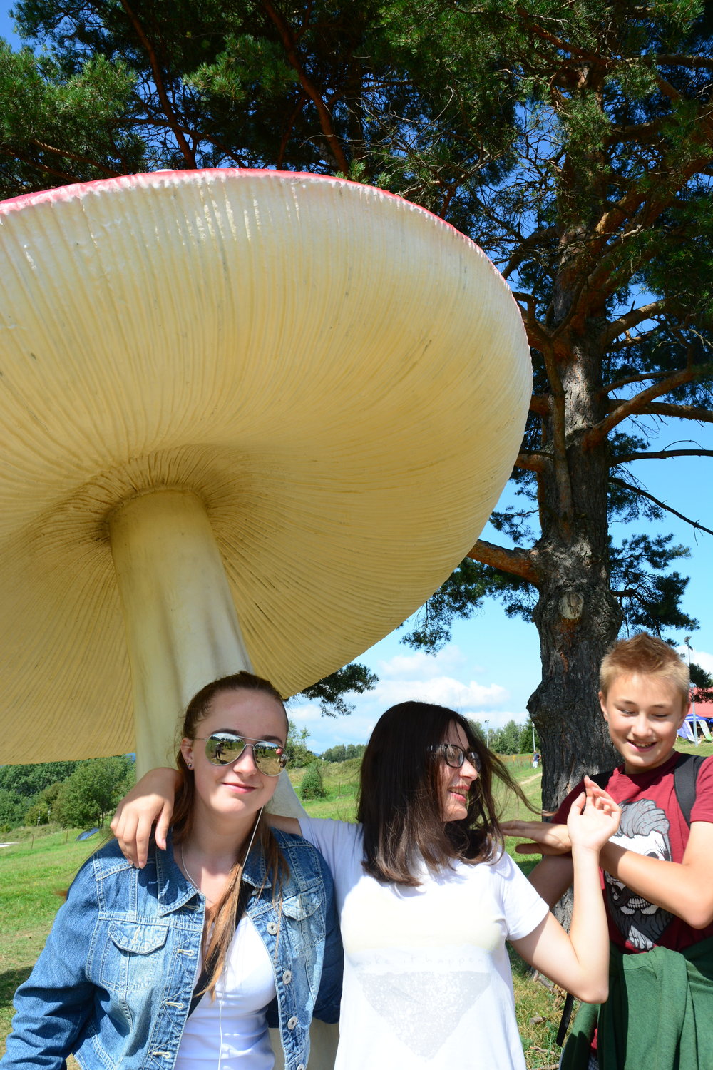 Na górze atrakcje jak zawsze. Trochę pozjeżdżamy, poskaczemy, polatamy i poleżymy. Niebo błękitne, grzyby pod drzewami, widoki pozwalają odpoczywać. A u naszych stóp przełom Dunajca i piękne zdrojowe miasteczko – Szczawnica. Zbiegamy na dół. Pieniński kurort zachwyca klimatem, architekturą… wszystko tutaj do nas woła. Po takim spacerze biegniemy coś zjeść. Na deser najlepsze lody. A teraz ruszamy uliczkami Szczawnicy do pijalni, do parku. Zaglądamy, oglądamy, szukamy, spacerujemy… Na koniec potok Grajcarek i wspólne słuchanie szumiącej wody, oglądanie płynących po niebie chmur. Zachodzi słońce, wracamy.