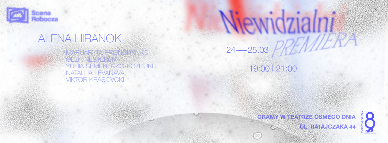 24 marca 2023 o godz. 19.00 w Teatrze Ósmego Dnia (Poznań, ul. Ratajczaka 44) odbędzie się premiera niewizualnego spektaklu pt. „Niewidzialni” przygotowanego przez białoruską artystkę Alenę Hiranok, która w 2022 roku była stypendystką Ministra Kultury i Dziedzictwa Narodowego w ramach programu Gaude Polonia.