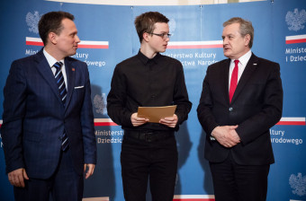 Wicepremier, Minister Kultury i Dziedzictwa Narodowego prof. Piotr Gliński wręczył dyplomy uczestnikom XVI edycji programu stypendialnego Młoda Polska. W tym roku stypendia otrzymało 88 twórców, spośród których 33 nie ukończyło jeszcze 18. roku życia. Uroczystość odbyła się 19 marca w Pałacu Rzeczypospolitej – siedzibie Biblioteki Narodowej w Warszawie.