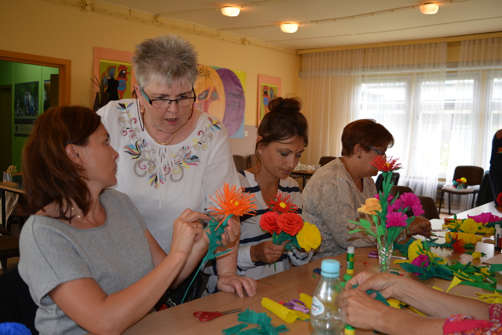 Warsztaty wykonywania kwiatów z bibuły zrealizowane w Muzeum Wsi Opolskiej w ramach Cyklu IV – Sztuki plastyczne. Fot. Bogdan Jasiński