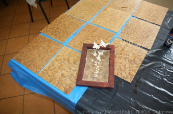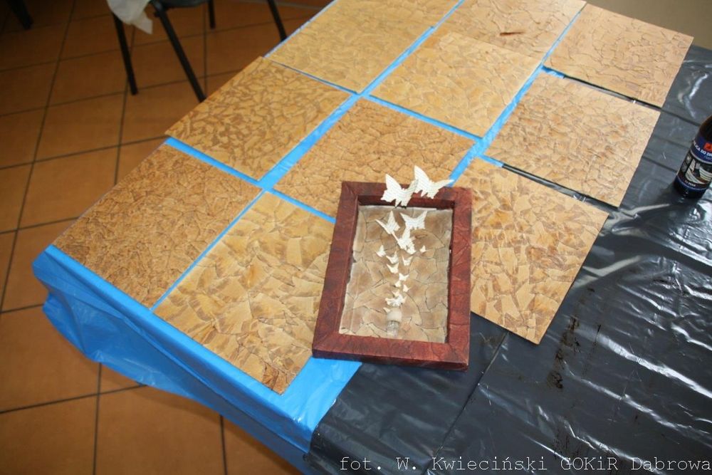Warsztaty „Coś z niczego – twórcze wykorzystanie surowców wtórnych“ realizowane przez GOKiR Dąbrowa we Wrzoskach.
