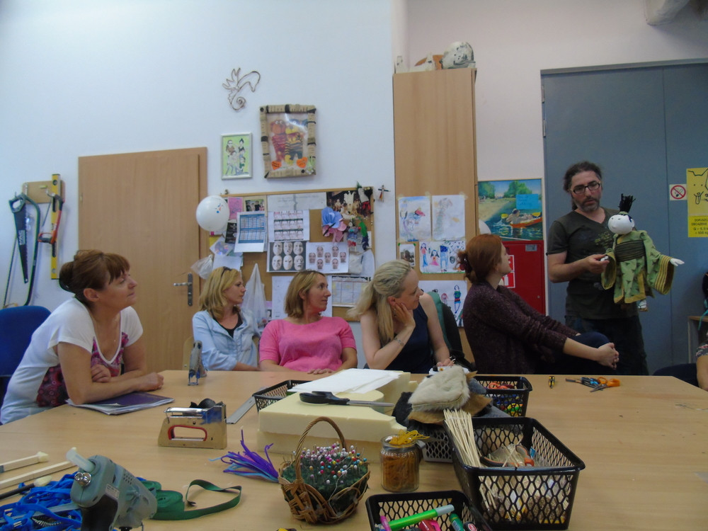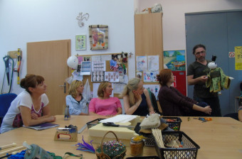 Warsztaty „TEATR TO DZIAŁA” w ramach Cyklu II – Animator kultury – praktyk. Zajęcia uczące tworzenia lalek Bunraku oraz rozwijające umiejętność interpretacji książek dla dzieci u animatorów kultury. Warsztaty odbywały się w Opolskim Teatrze Lalki i Aktora. Fot. L. Kubisa