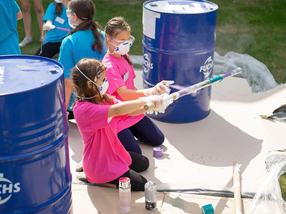 Po części, w której instrumenty były konstruowane, przyszedł czas na dekorowanie. W ruch poszły papiery samoprzylepne, ozdobne pasmanterie i dziurkacze czy ścinki tkanin. Jednak elementem cieszącym się największym zainteresowaniem dzieci było spray’owanie! Do wyboru mieliśmy szeroką gamę kolorów, ściśle związanych z barwami całego projektu. W międzyczasie nasze warsztaty odwiedzili goście: dziennikarze lokalnych mediów. Dzieciaki zaliczyły debiuty telewizyjne i radiowe, a efekty starań wystąpień przed kamerą szeroka publiczność mogła zobaczyć nawet na antenie Teleexpress’u! Czas pokazał, że był to świetny trening przed Koncertem Finałowym, podczas którego gościliśmy kamery, dyktafony i aparaty po raz kolejny.