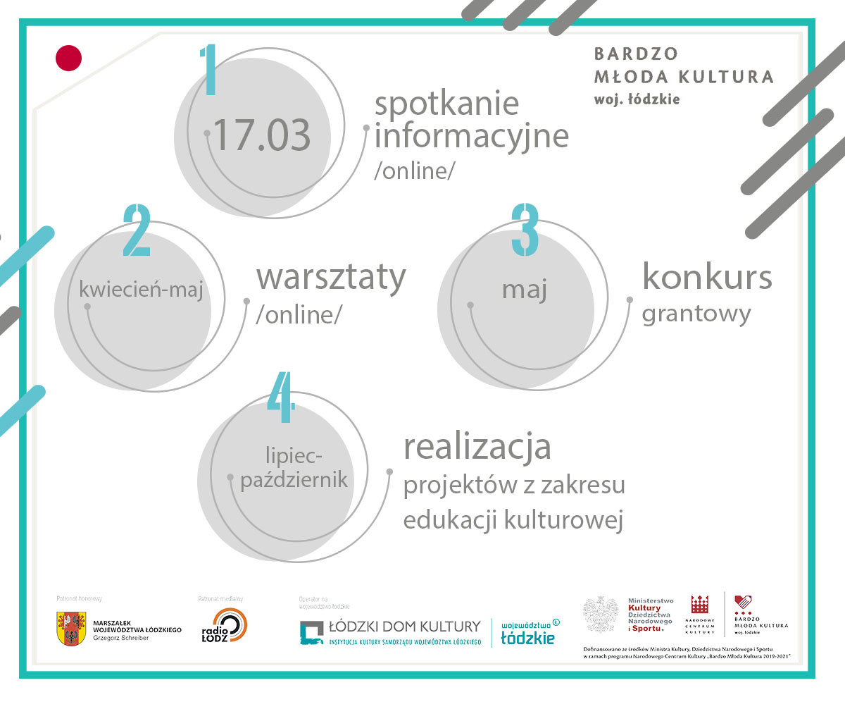 Łódzki Dom Kultury zachęca do udziału w nadchodzącej edycji konkursu na realizację przedsięwzięć z zakresu edukacji kulturowej w ramach projektu Bardzo Młoda Kultura 2019-2021 woj. łódzkie - edycja 2021.