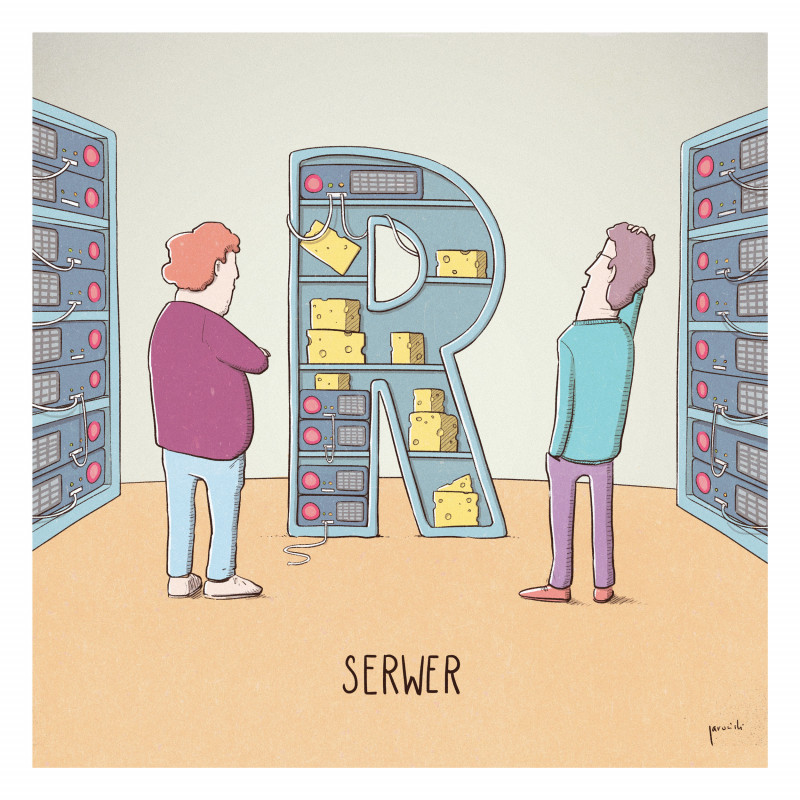 „SERWER czym jest, każdy wie” – można by powiedzieć, parafrazując Benedykta Chmielowskiego. Dla tych przed trzydziestką SERWER istniał od zawsze, dla tych dobrze po czterdziestce SERWER to „nowe zapożyczenie z angielskiego”. SERWER to oczywiście anglicyzm, który rozpowszechnił się w polszczyźnie pod koniec XX w., mniej więcej w tym czasie, co inne słowo z tej samej branży – Internet. Pierwotnie słowo SERWER odnoszone było do programu, którego zadaniem było wykonywanie zdalnie przesyłanych poleceń z innych komputerów w sieci. Ponieważ każdy program działa na jakimś komputerze, również komputer, na którym działał program SERWER, zaczęto nazywać SERWEREM. Dla laików zatem SERWER to komputer przeznaczony do zdalnej obsługi poleceń użytkowników w sieci, dla komputerowców – program lub komputer o takiej funkcji. SERWER – w języku oryginału server – to rzeczownik utworzony od ang. czasownika to serve ‘służyć, obsługiwać, podawać’. W tekstach fachowych, opisujących przyszły program, nie zastosowano istniejącego w angielszczyźnie, a dziedziczonego z łaciny rzeczownika servant ‘służący’, tylko stworzono nowe słowo – SERVER – wykorzystując przyrostek -er, tworzący nazwy wykonawców czynności już w klasycznej łacinie. Dzięki temu utworzono nowe pojęcie przeznaczone specjalnie do użytku informatycznego. Gdybyśmy chcieli przetłumaczyć SERWER (tak jak przetłumaczyliśmy angielskie mouse na MYSZKĘ), to chyba najbliższy byłby „służyciel” – bliski znaczeniowo SŁUŻĄCEMU, ale jednak odmienny od niego.