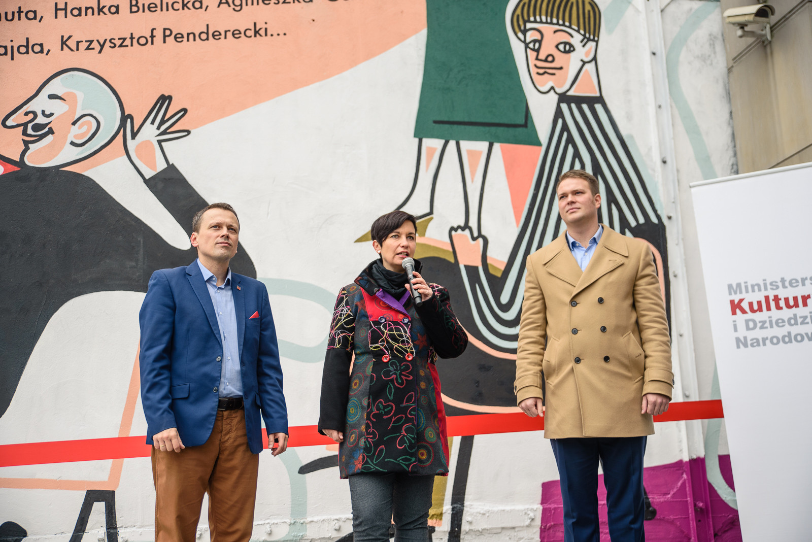 W uroczystej inauguracji muralu, która odbyła się 10 listopada, wzięli udział: Paulina Florjanowicz, Kierownik Departamentu Dziedzictwa Kulturowego Ministerstwa Kultury i Dziedzictwa Narodowego, Jan Kowalski, Dyrektor Biura Programu Niepodległa oraz prof. Rafał Wiśniewski, Dyrektor Narodowego Centrum Kultury. Odsłonięcie muralu wpisało się w cały zbiór wydarzeń uświetniających setną rocznicę odzyskania przez Polskę Niepodległości.