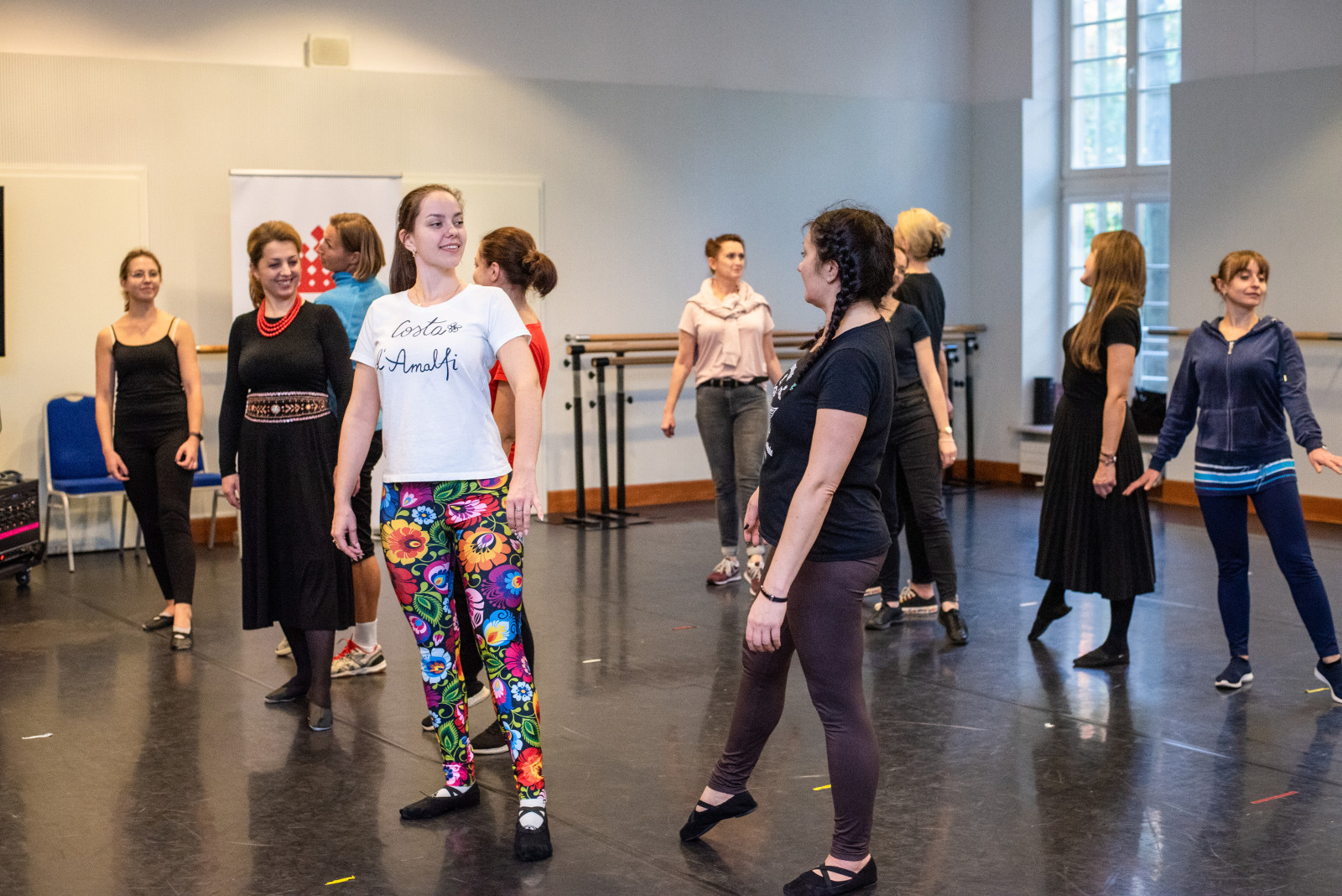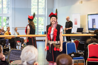 Ubiegły weekend był przepełniony tańcem, śpiewem i barwnymi strojami, a to za sprawą warsztatów edukacyjnych dla nauczycieli organizowanych w ramach konkursu „Piątka z narodowych”. Podczas dwudniowych warsztatów zorganizowanych w Otrębusach – siedzibie zespołu Mazowsze, 28 nauczycieli ze szkół podstawowych w całej Polsce poznawało podstawowe kroki i figury krakowiaka, a na koniec uczestnicy wykonali Suitę krakowską. Ponadto nauczyciele wzięli udział w zajęciach wokalnych oraz etnograficznych, podczas których przybliżone (i przymierzone) zostały m.in. stroje krakowskie.