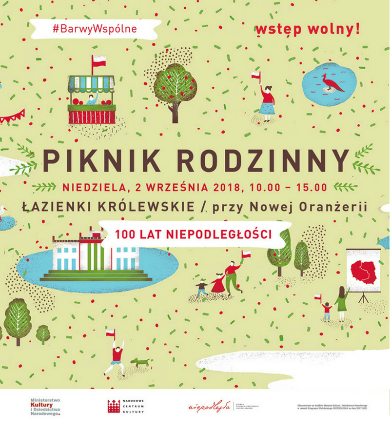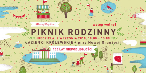 Zapraszamy na Piknik Rodzinny #BarwyWspólne, który odbędzie się 2 września w Łazienkach Królewskich w Warszawie – przy Nowej Oranżerii. Z okazji setnej rocznicy odzyskania niepodległości chcemy stworzyć możliwość do spotkania się i aktywnego spędzenia ostatniej wakacyjnej niedzieli.
