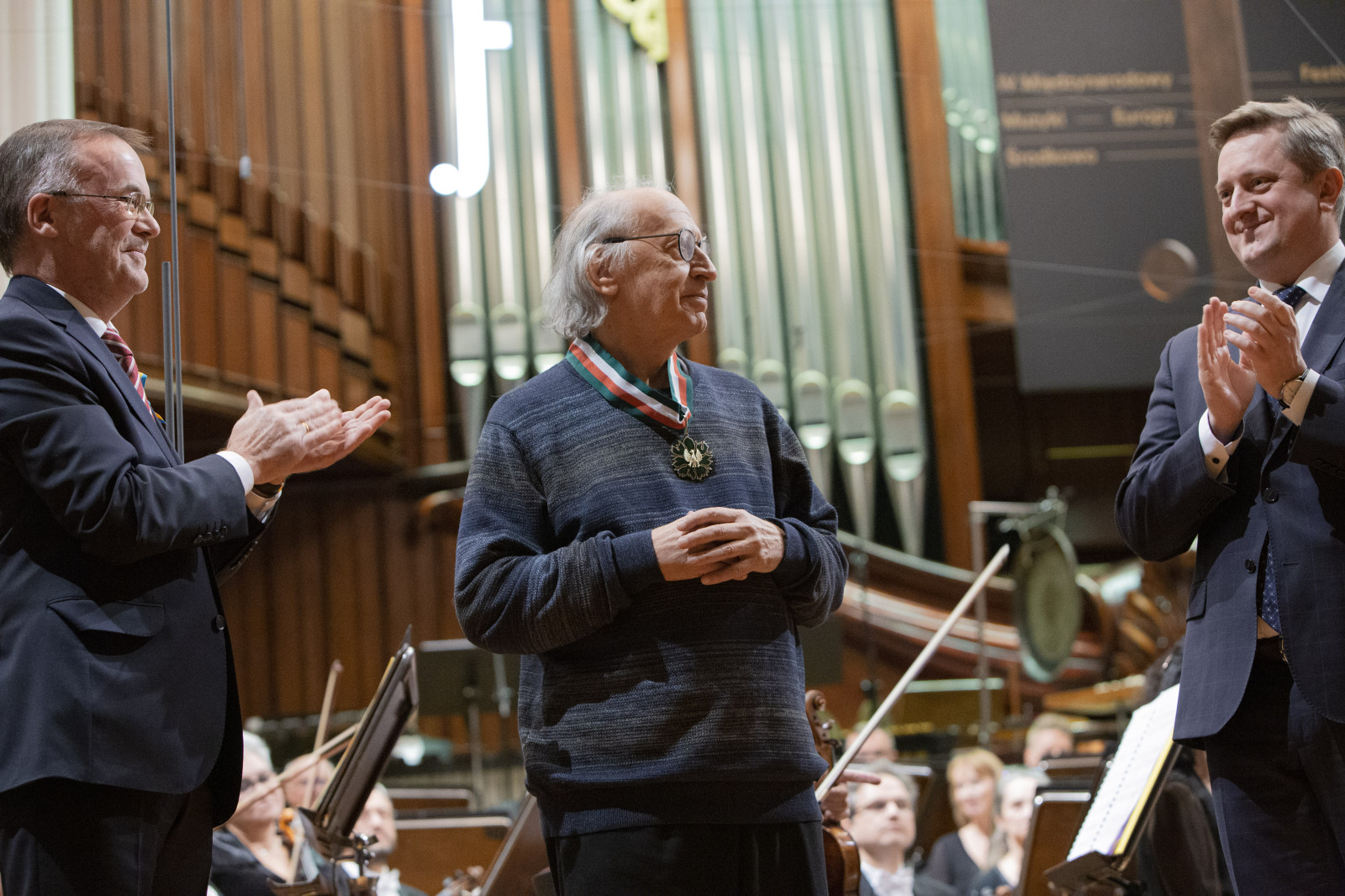 W laudacji na cześć kompozytora, dziękując za jego niezwykłe dzieła wiceminister Sellin wyraził też wsparcie dla narodu ukraińskiego.