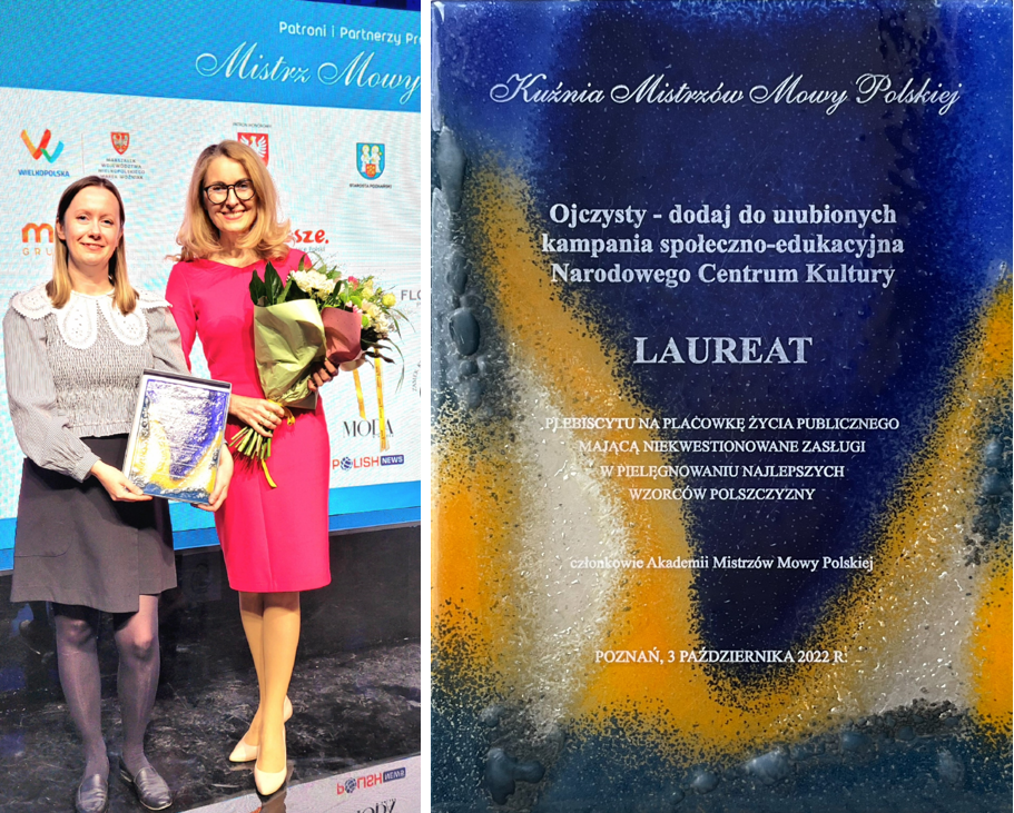 Kampania społeczna Ojczysty - dodaj do ulubionych Narodowego Centrum Kultury, dofinansowywana ze środków Ministra Kultury i Dziedzictwa Narodowego, w swoje dziesiąte urodziny została uhonorowana zaszczytnym tytułem Kuźni Mistrzów Mowy Polskiej w tegorocznej XXII edycji Programu Mistrzów Mowy Polskiej podczas gali, która odbyła się 3 października 2022 r. na terenie Międzynarodowych Targów Poznańskich. Akademia Mistrzów Mowy Polskiej, skupiająca laureatów lat poprzednich, uznała, że Ojczysty ma niekwestionowane zasługi w pielęgnowaniu najlepszych wzorców polszczyzny.