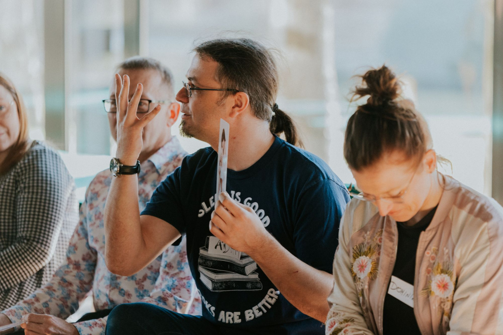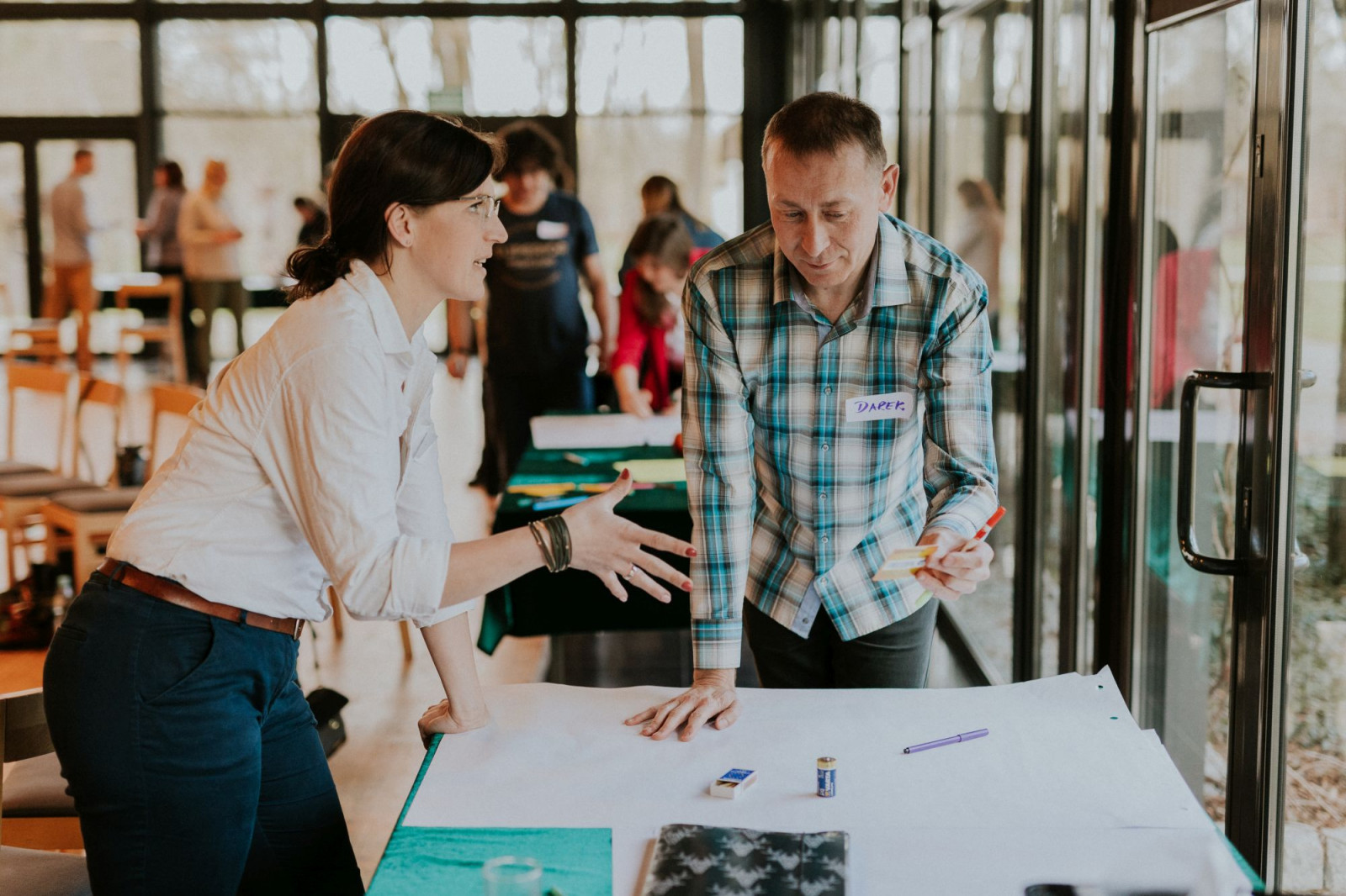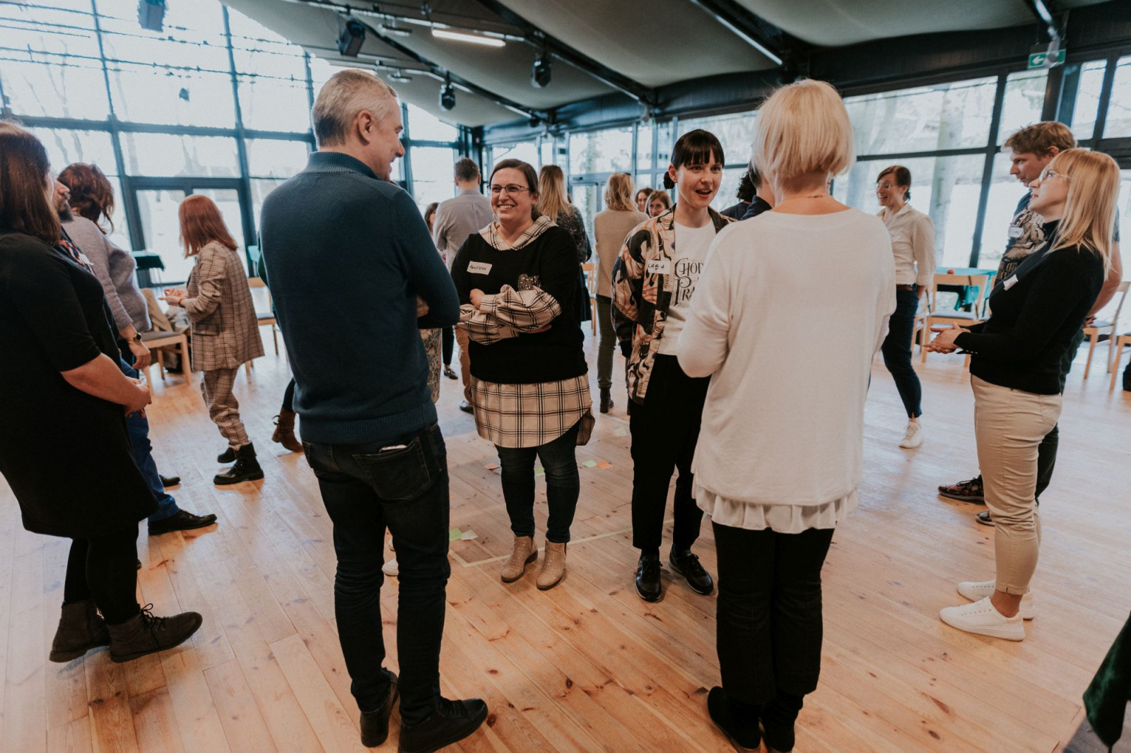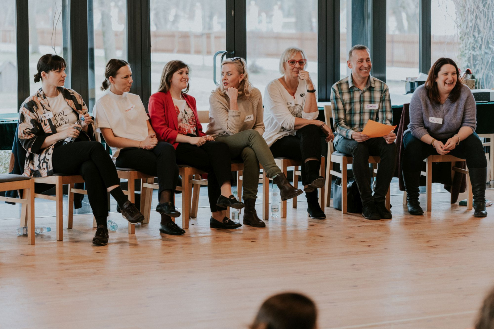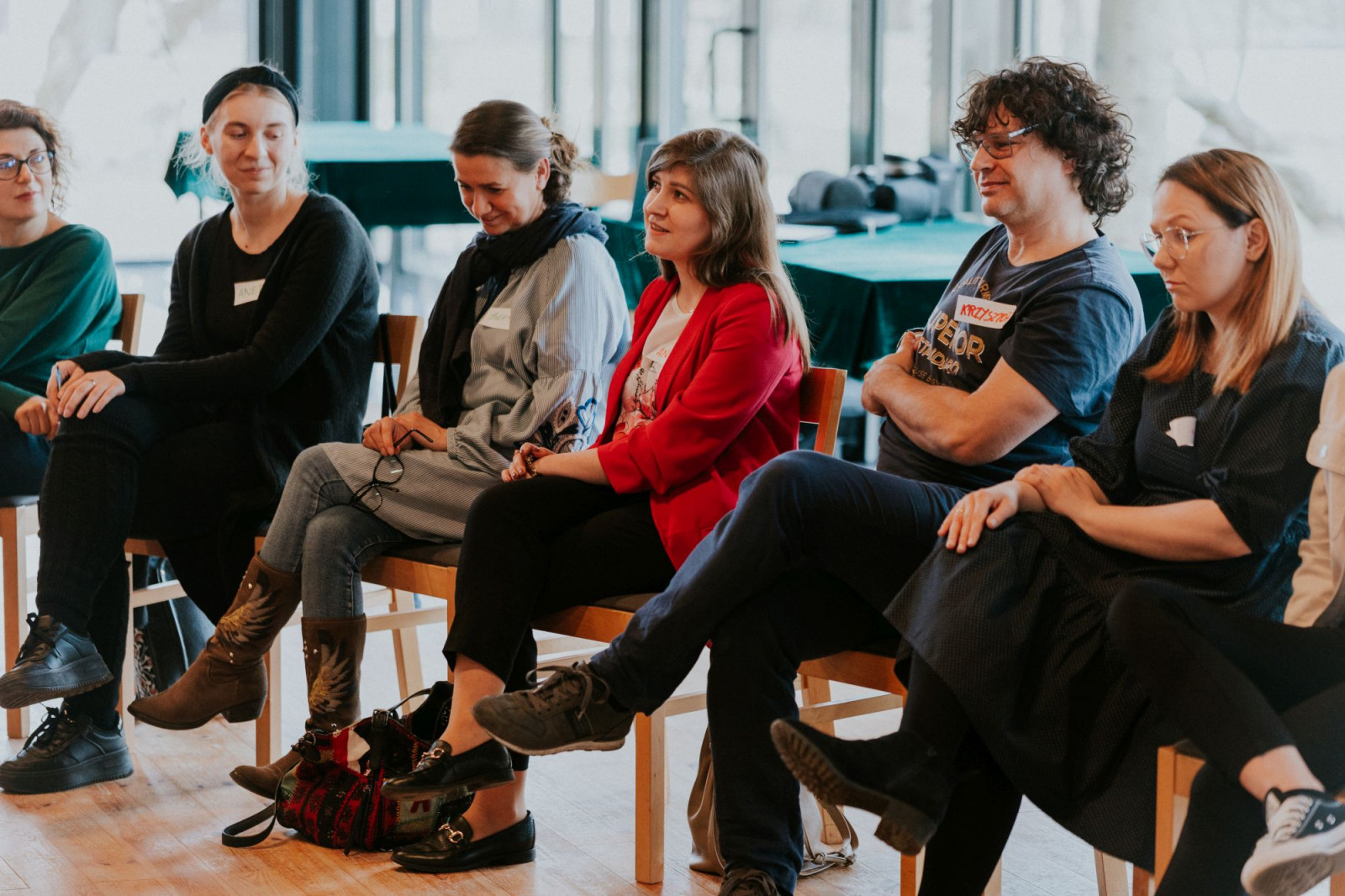 Zaczęło się. Po obiedzie, który każdy duet przyjeżdżający z instytucji zjadł w swoim tylko towarzystwie, należało się zintegrować. Za pomocą ciekawych i wciągających wszystkich uczestników ćwiczeń poznaliśmy się nie tyle z imienia, ile z charakteru naszej zróżnicowanej grupy. Określając potencjał wiadomym było, że jest to grupa silna, bogata w doświadczenia oraz bardzo świadoma potrzeby, z jaką przyjechała. Uczestnicy jednocześnie otwarci